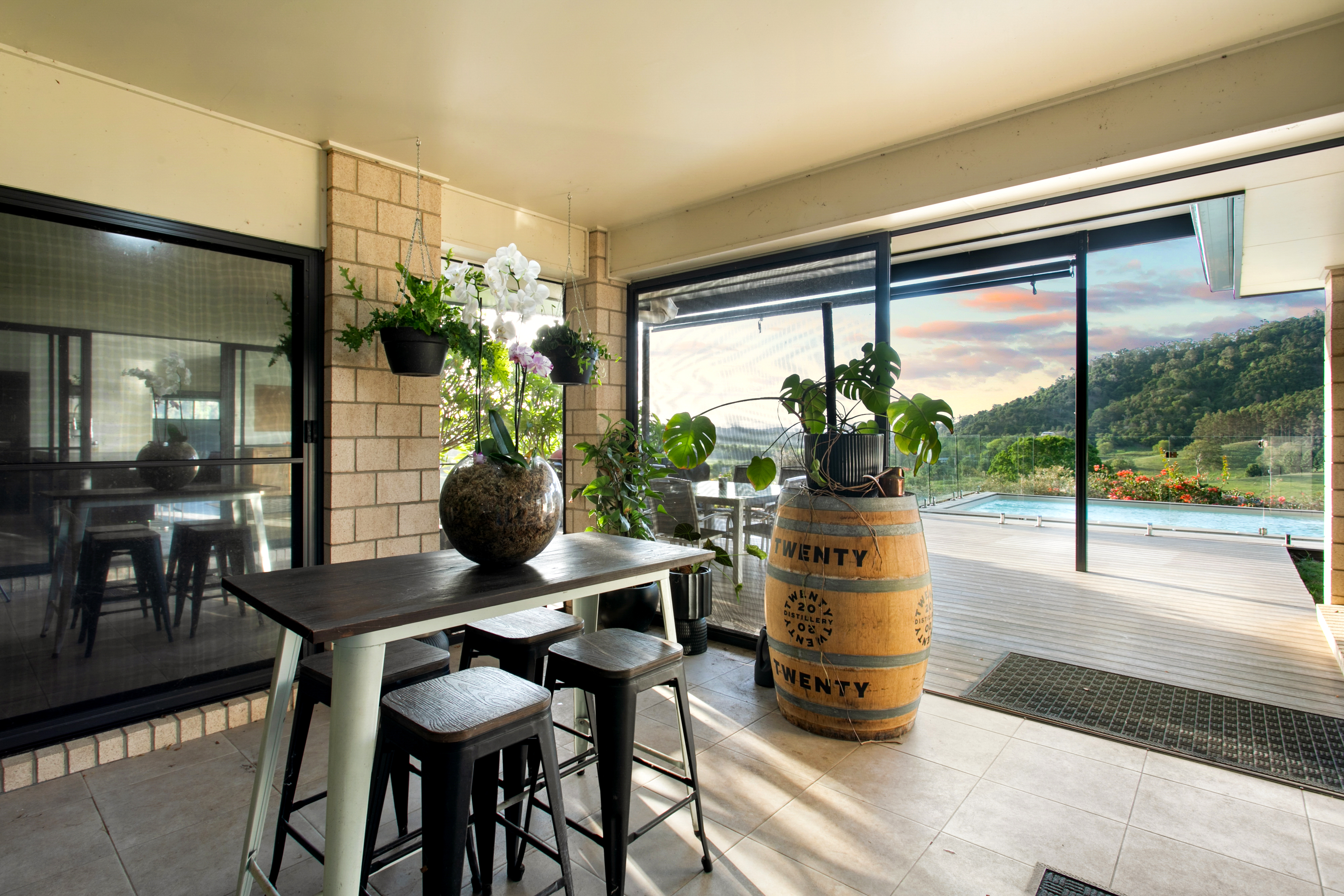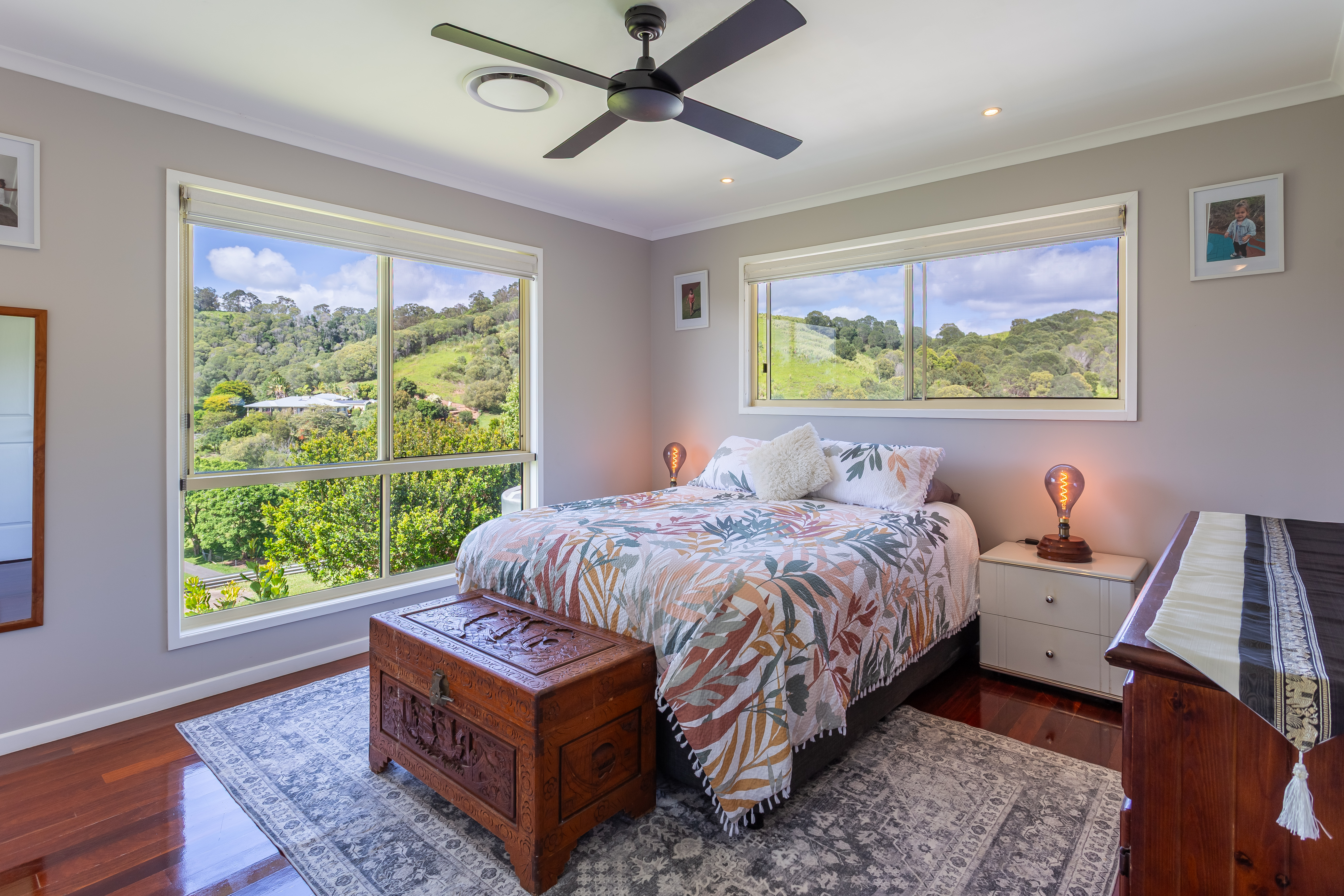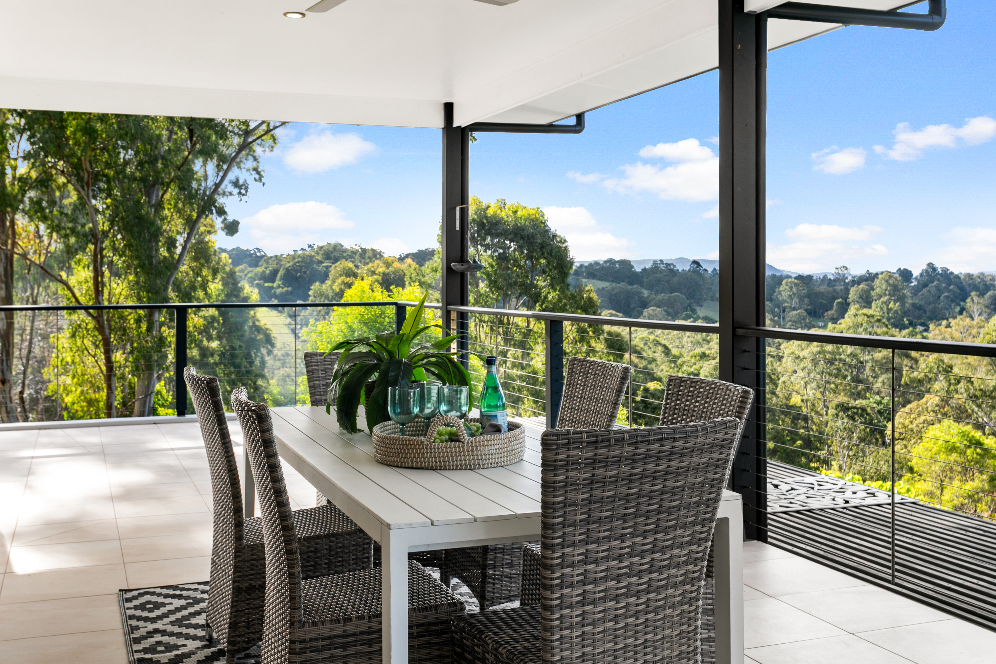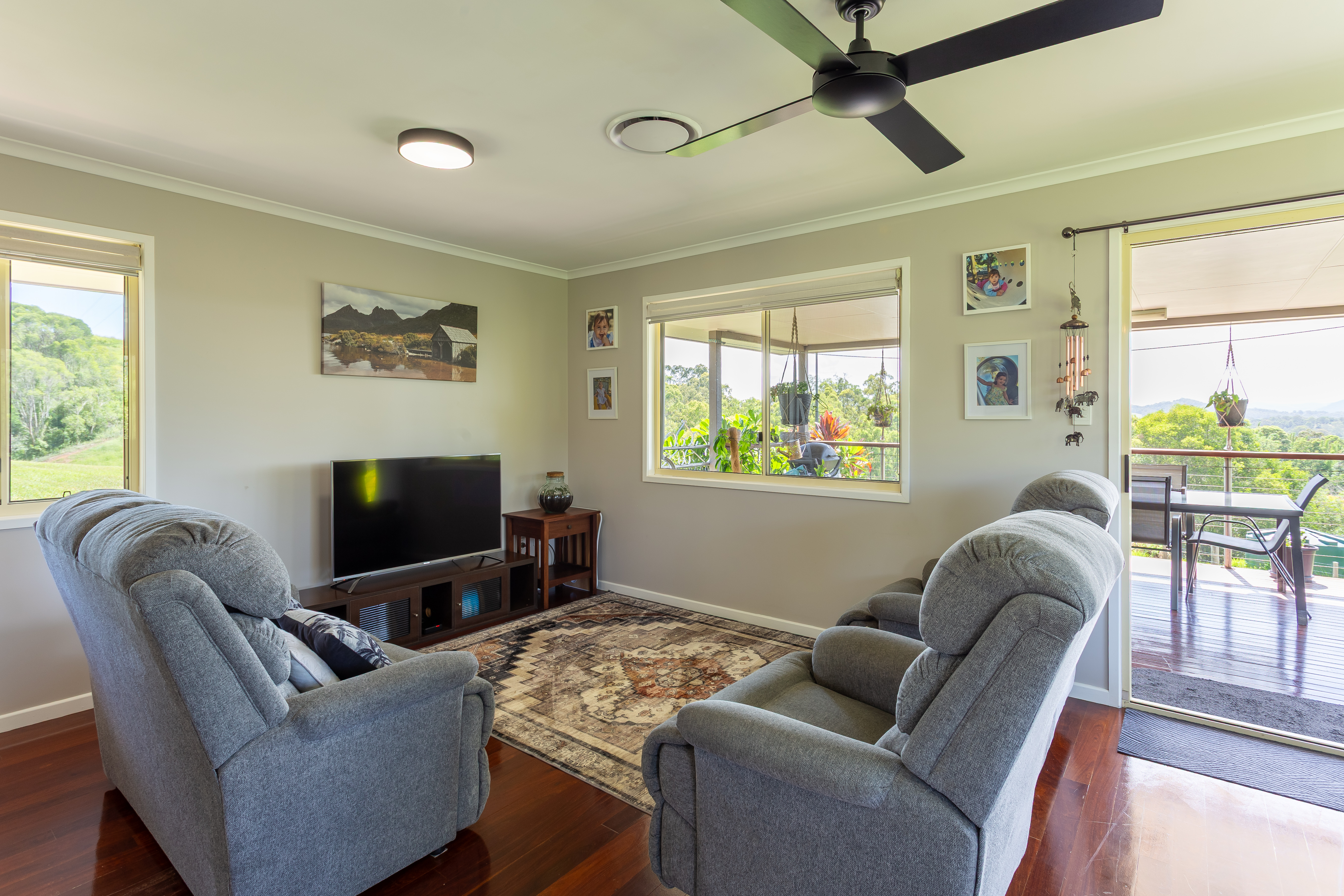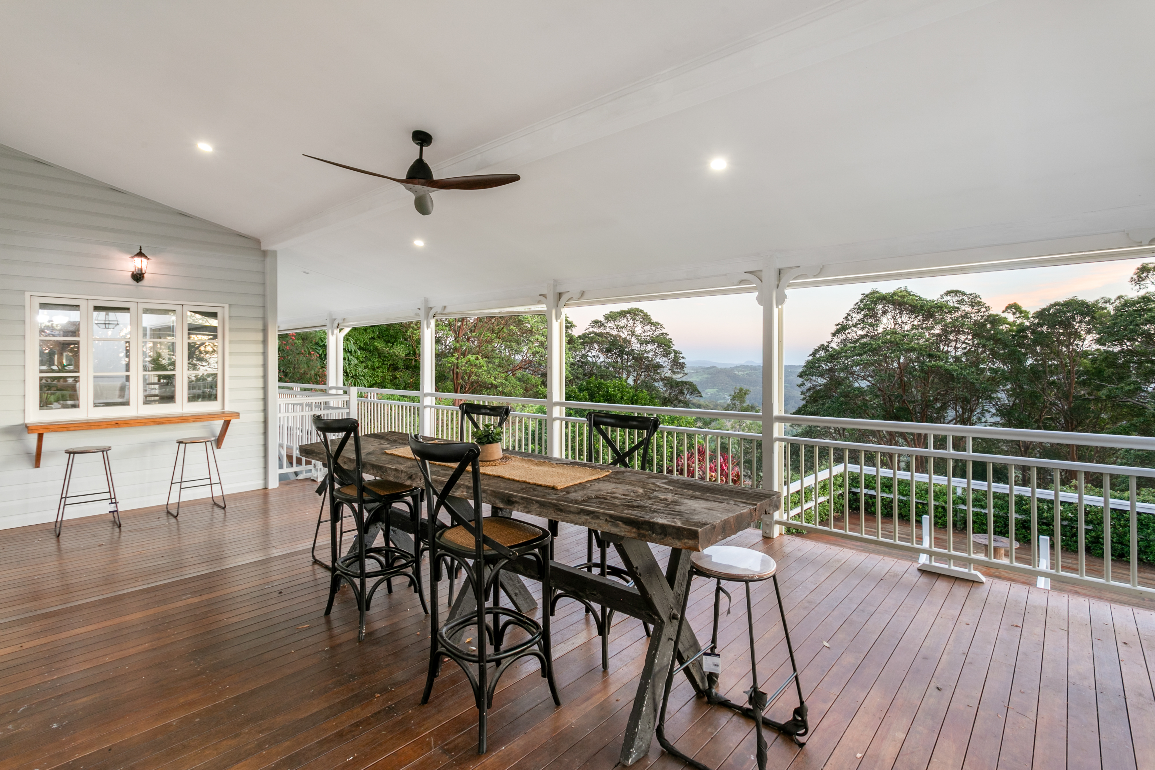 Comprising of four bedrooms two which open on to the full length covered deck with mountain views, two bathrooms, light-filled kitchen, lounge room, separate laundry, sunroom opening up on to a second large covered deck at rear.