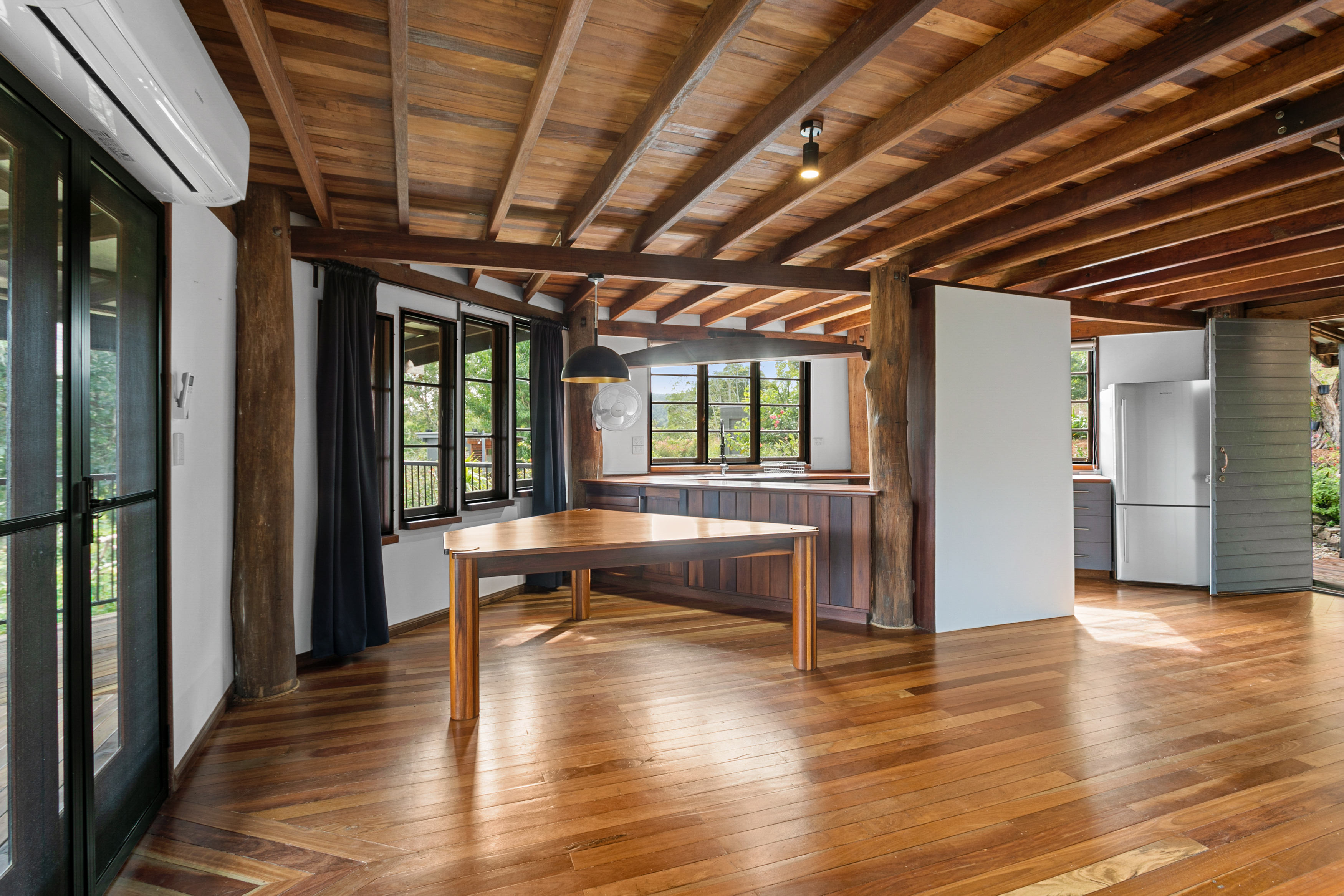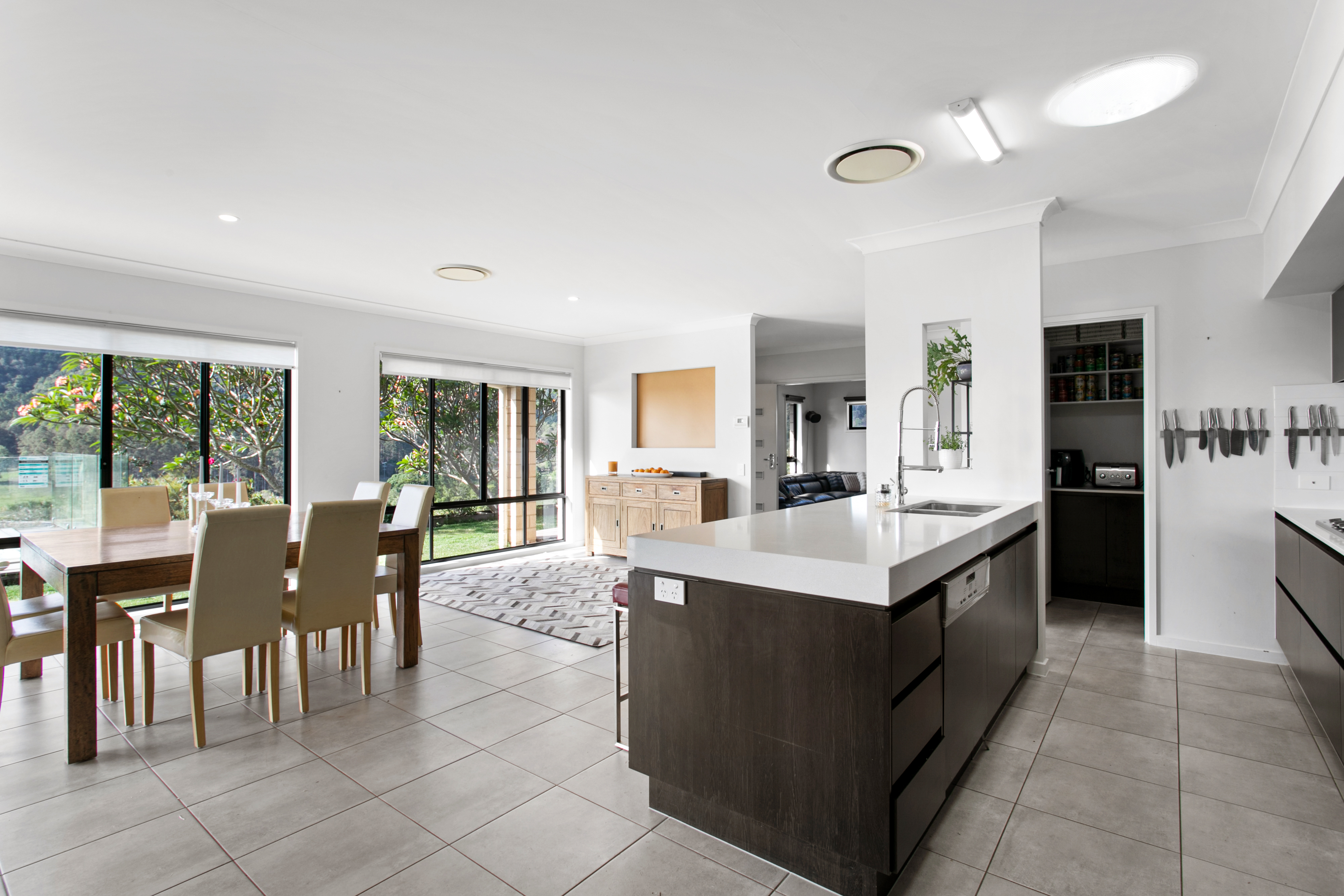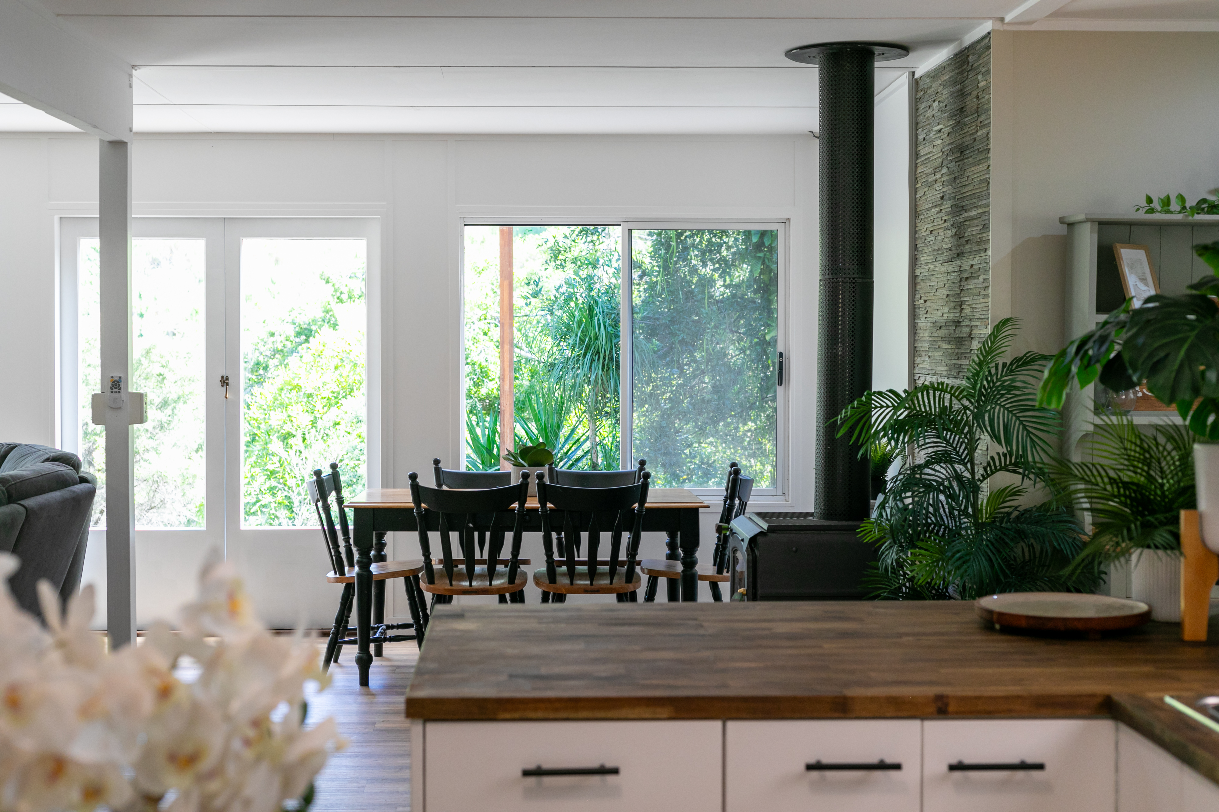 Thoughtfully designed to connect with its natural surroundings, the spacious open-plan home enjoys calming green views from every window.