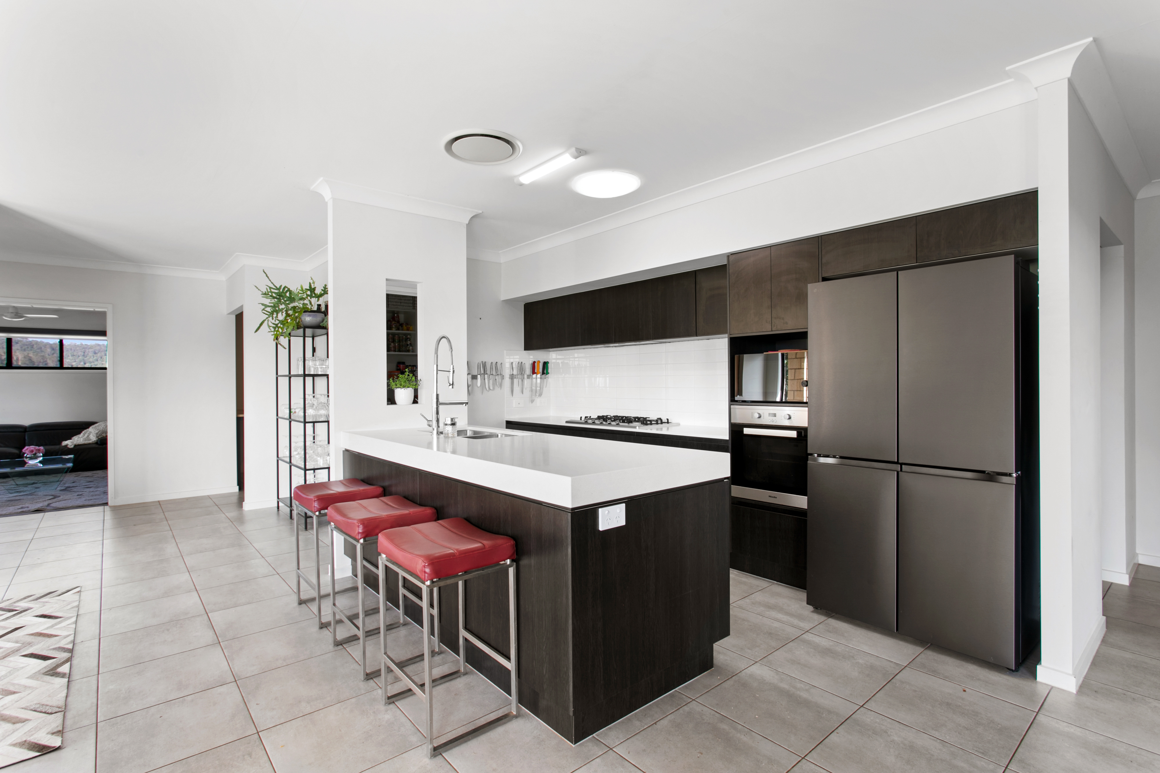 • Contemporary kitchen with stone benchtop & stainless appliances