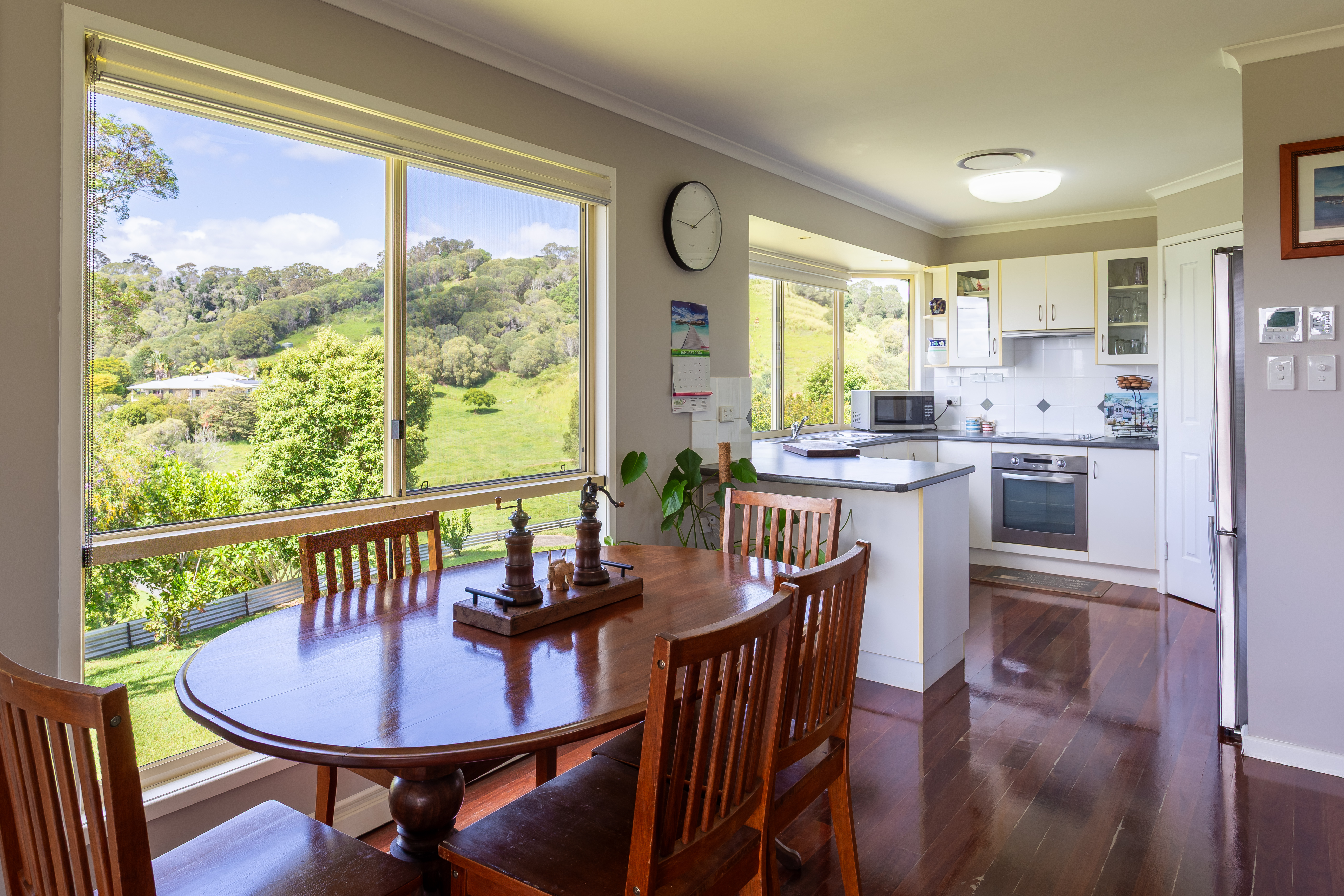 Current owners have installed ducted air-conditioning and replaced ceiling fans since purchasing, and the roof was replaced and solar power installed in 2019. Other notable features include stunning hardwood timber floors throughout, roller blinds, security screens on external doors, and bay window in kitchen with delightful outlook (there are lovely views from all windows).