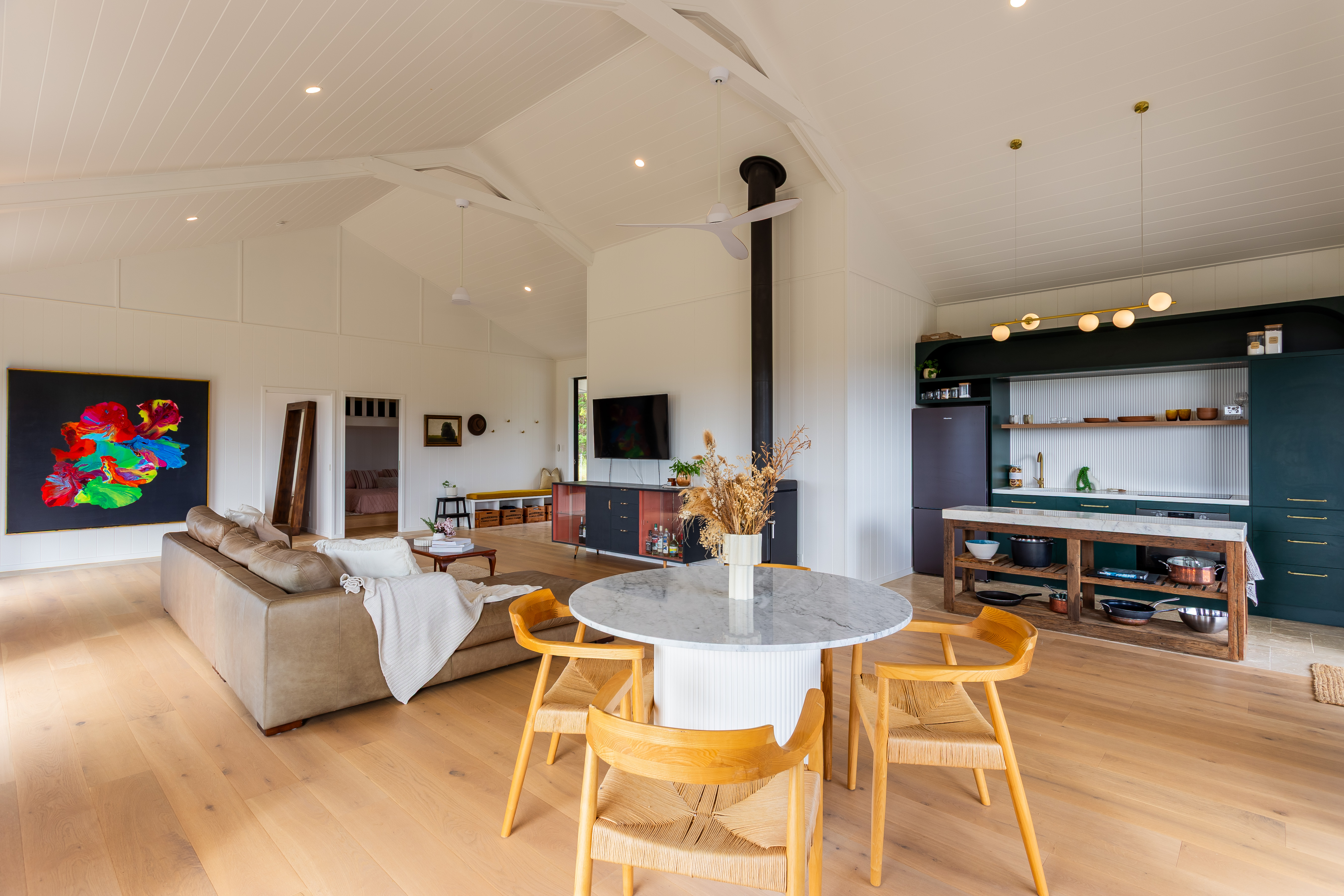 Surrounded by lush native forest, the property is teeming with wildlife. Kangaroos, koalas, possums, goannas and ducks roam freely, while kookaburras, cockatoos and tawny owls provide a constant natural soundtrack. Mornings begin with birdsong, evenings settle into the gentle rhythm of cicadas and crickets, and nights are wonderfully quiet and restorative.
