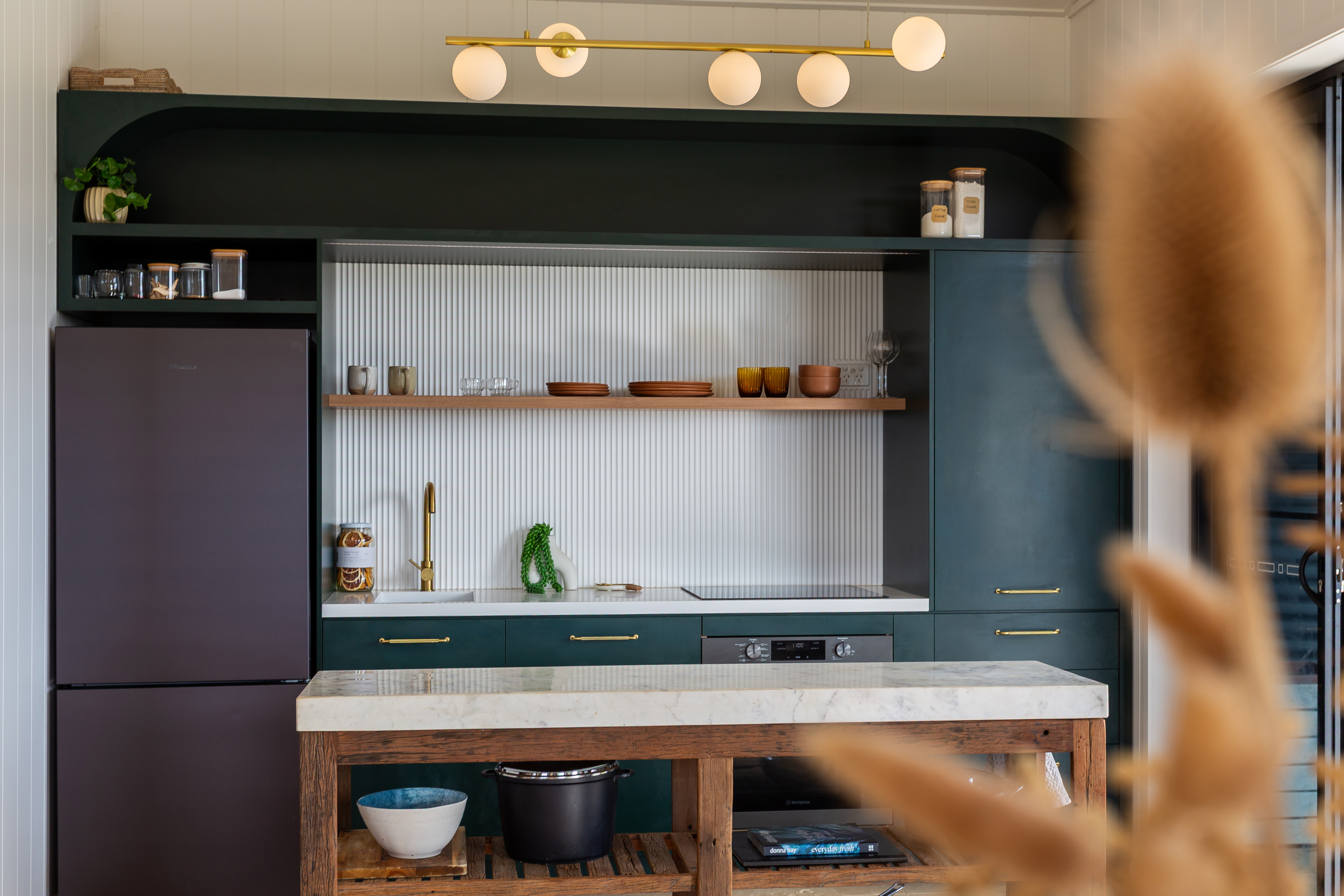 • Striking kitchen bench crafted from a solid slab of camphor laurel
