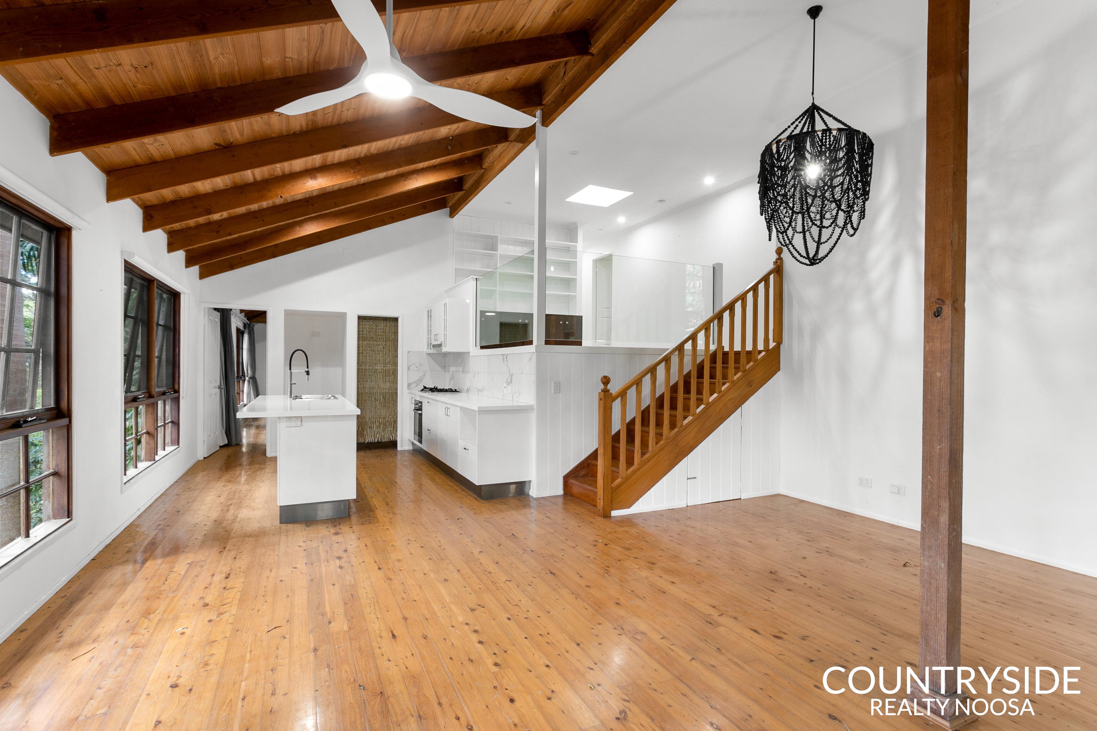 This beautifully renovated Queenslander is fully fenced in a quiet central Cooroy street just a short walk to town amenities, golf course, and high school.