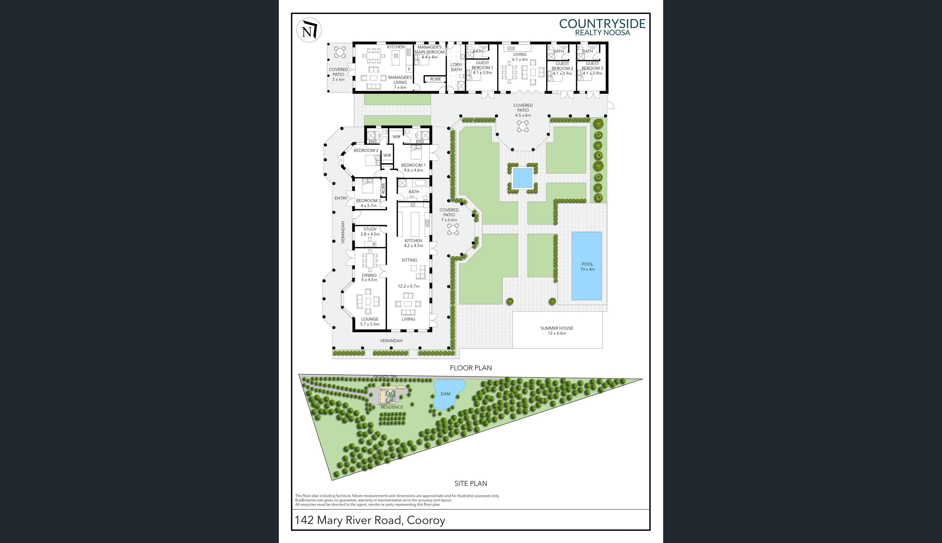 • Two private wings including self-contained guest/manager's quarters