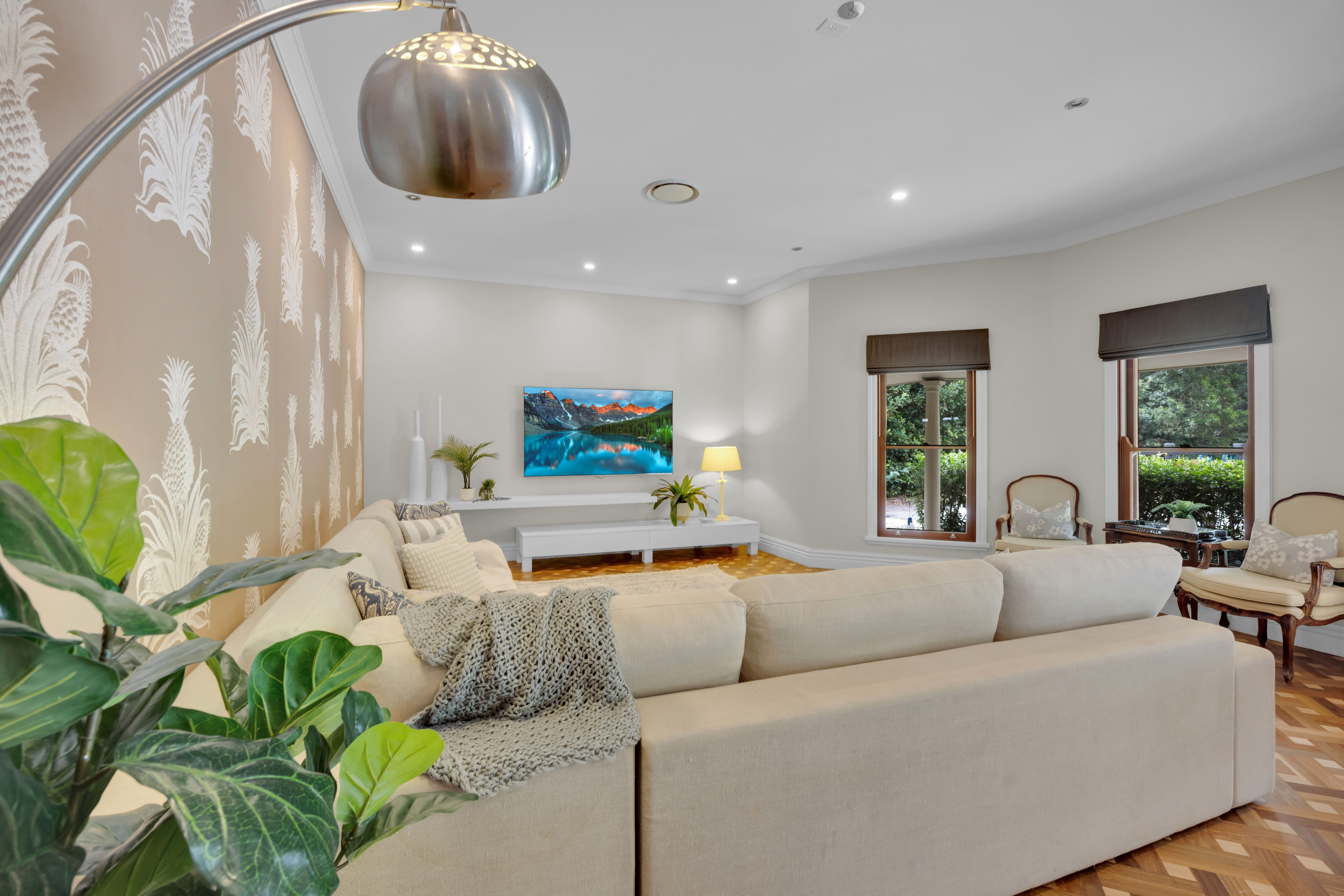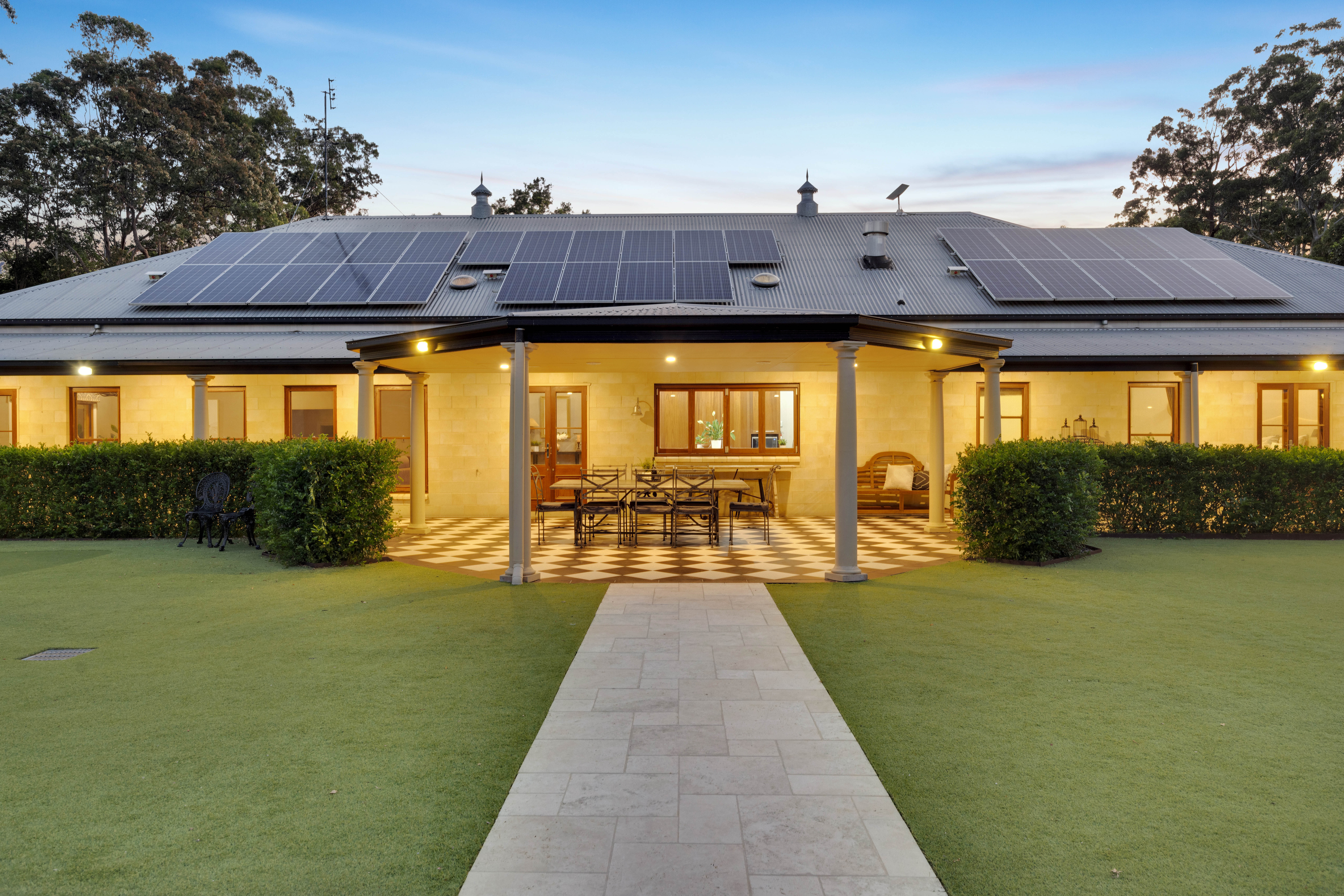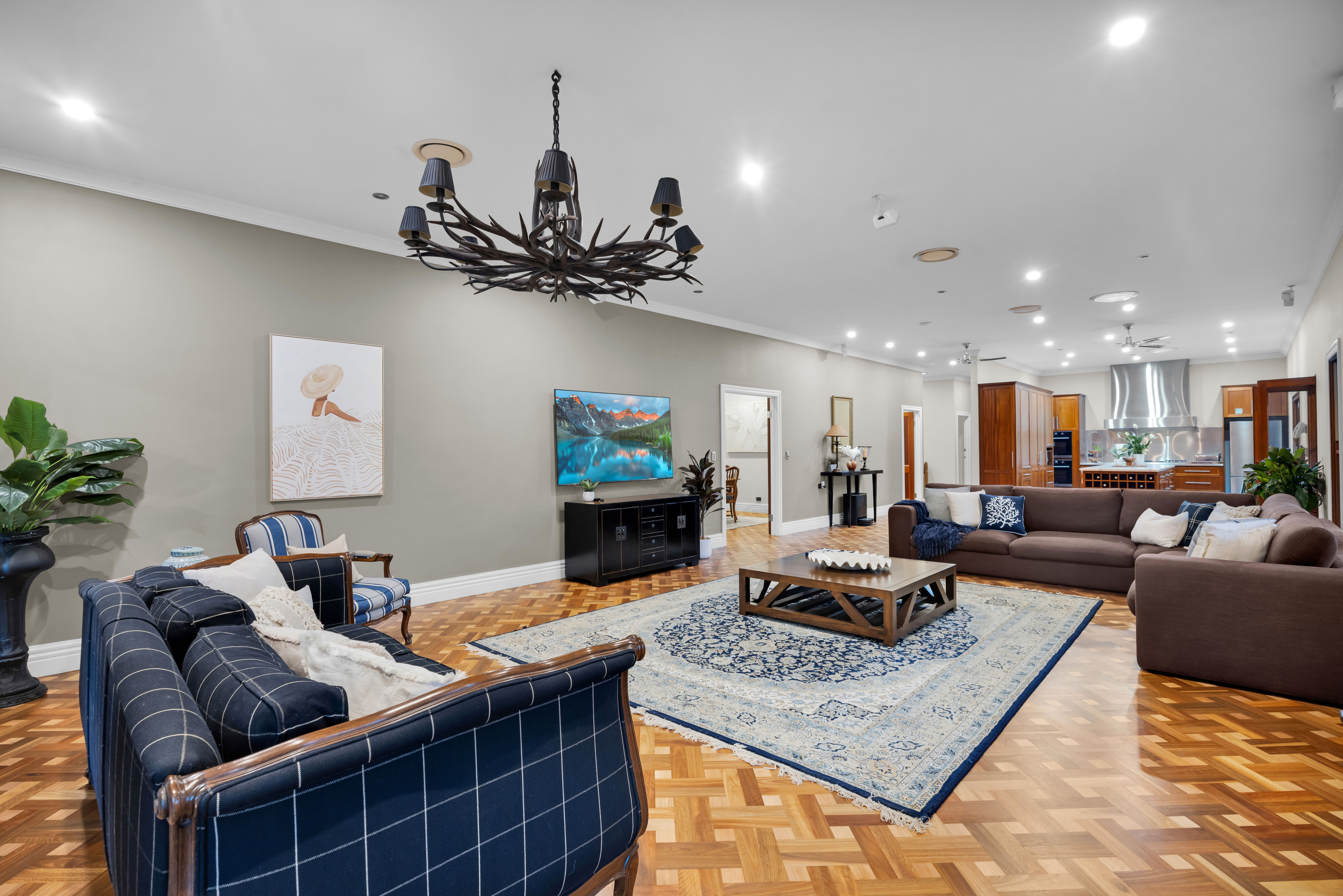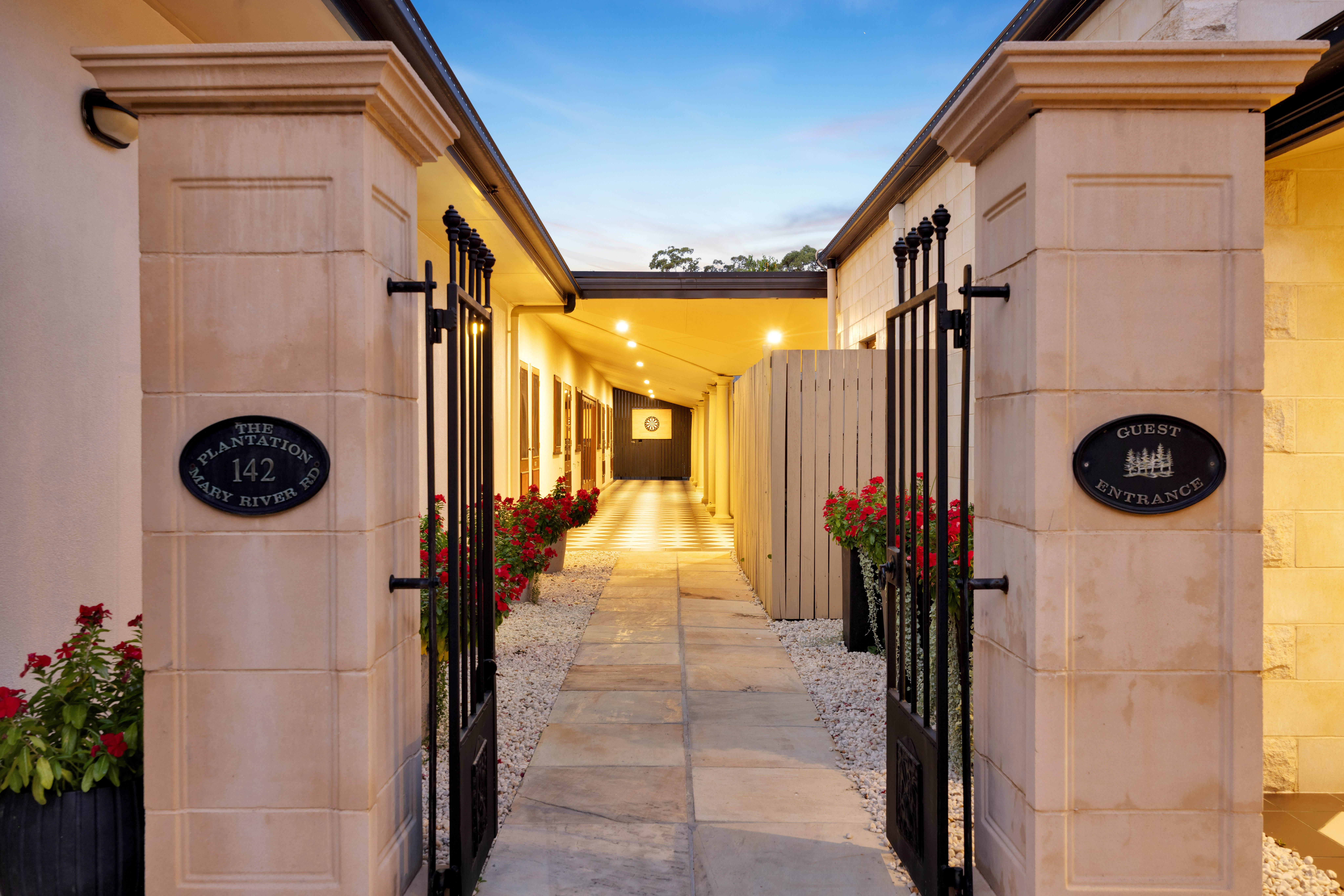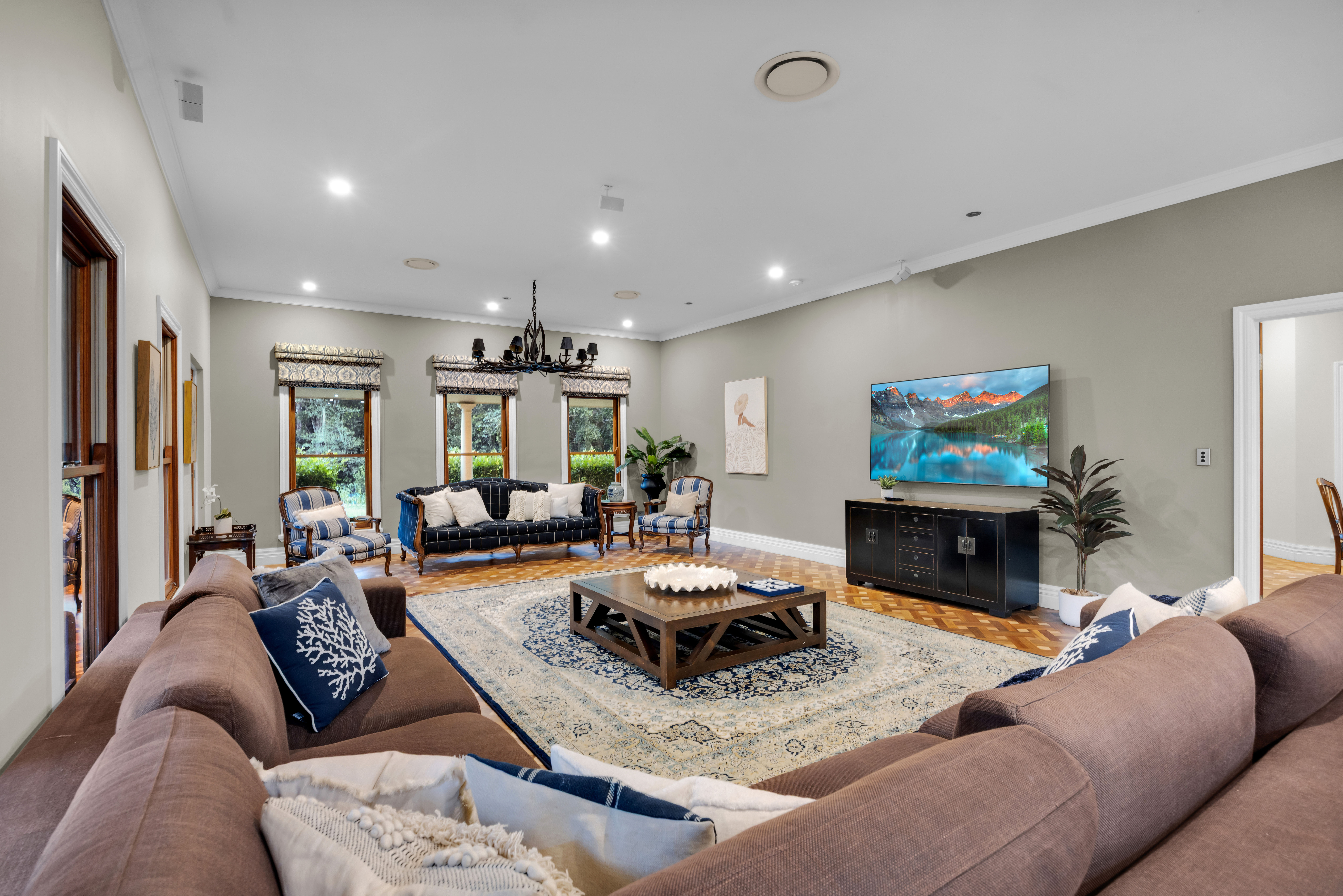 From the moment of arrival, a sense of significance is unmistakable. Electric gates glide open to reveal a magnificent tree-lined sealed driveway, establishing a grand approach that unfolds to a residence of rare architectural integrity and aesthetic harmony.