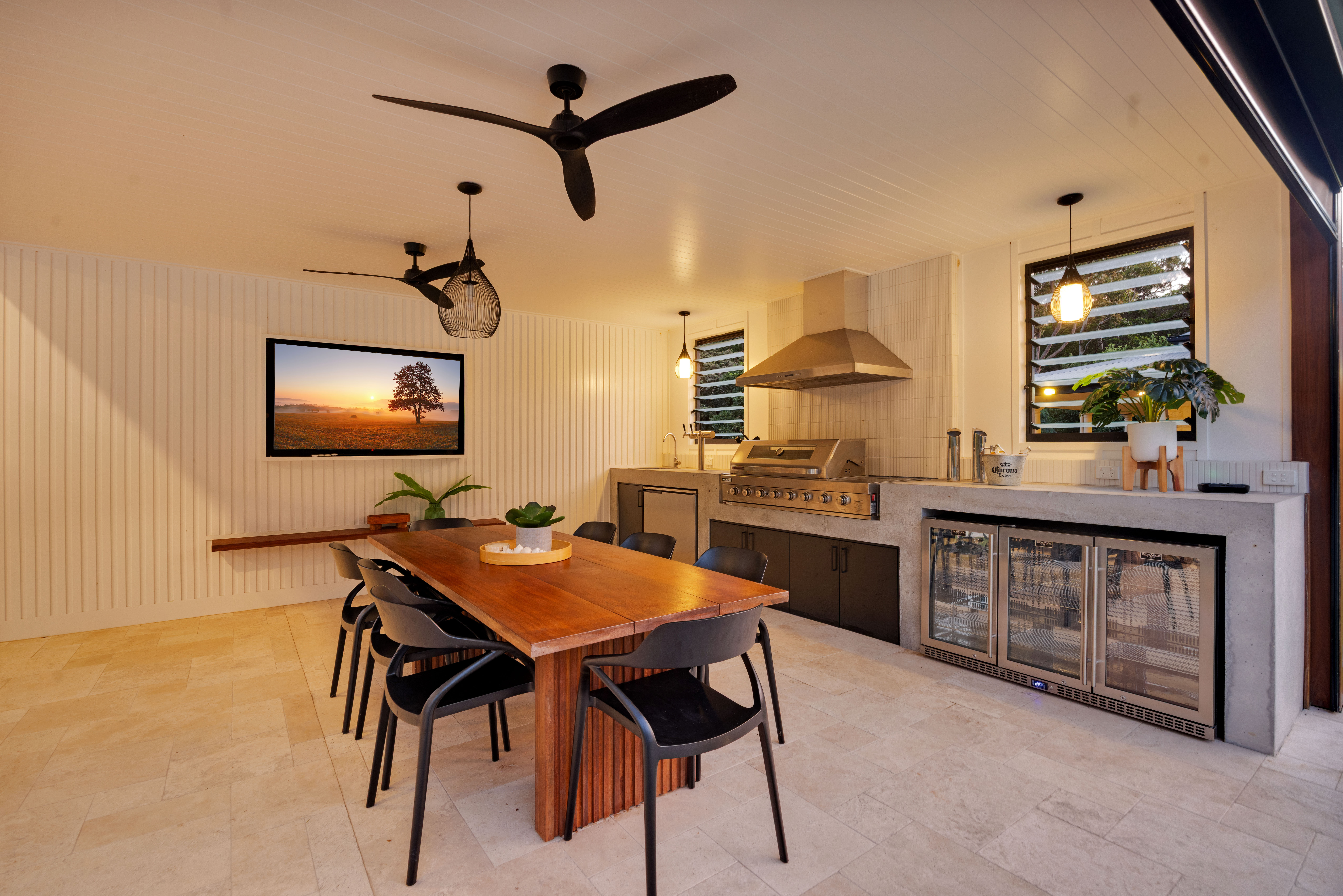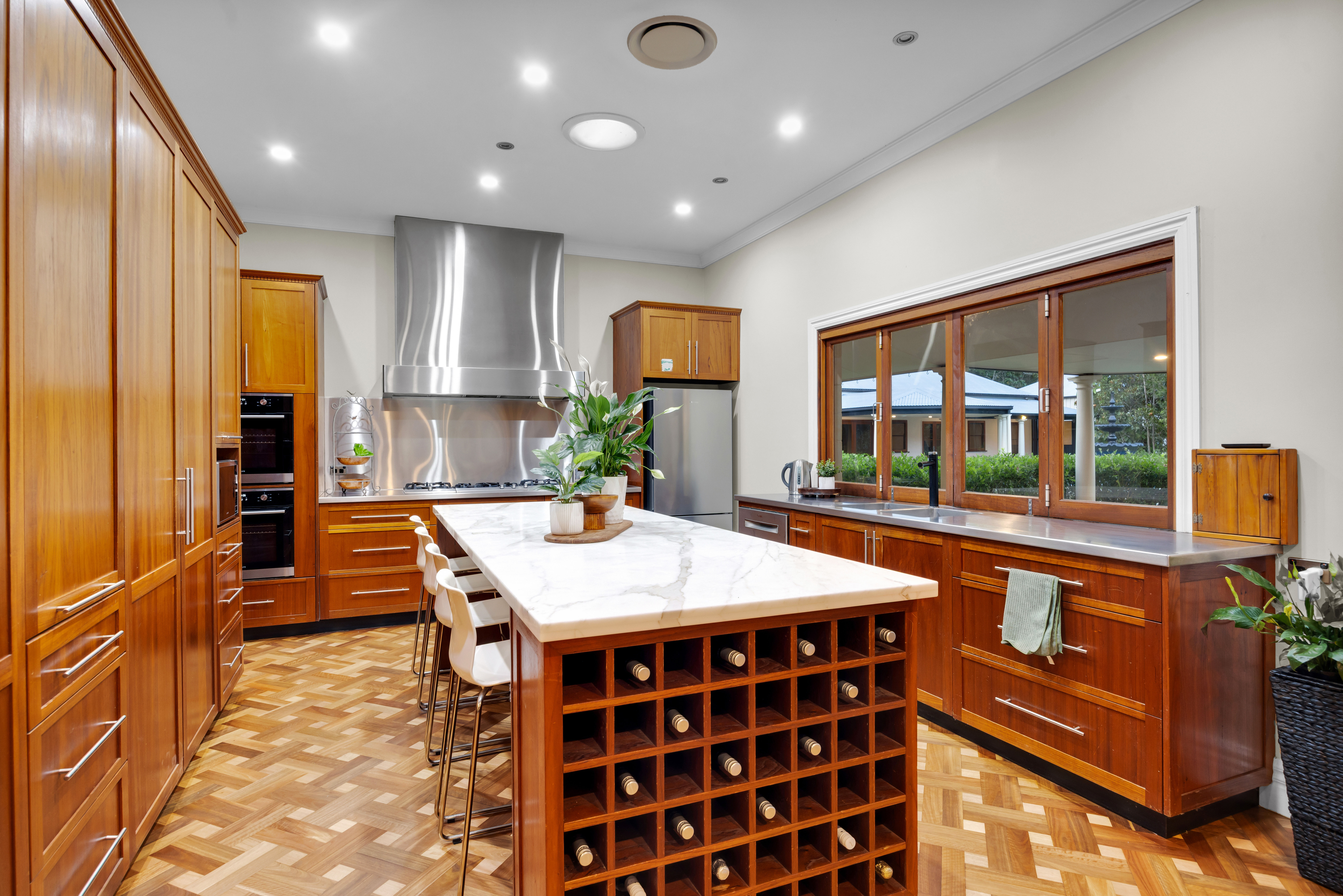 The guest wing delivers exceptional flexibility and independence. It incorporates a fully self-contained manager's residence with private patio, along with three beautifully appointed en-suite guest bedrooms and a separate lounge with kitchenette - each opening onto its own outdoor space. The configuration is ideally suited to multigenerational living, executive hosting, or boutique accommodation potential.