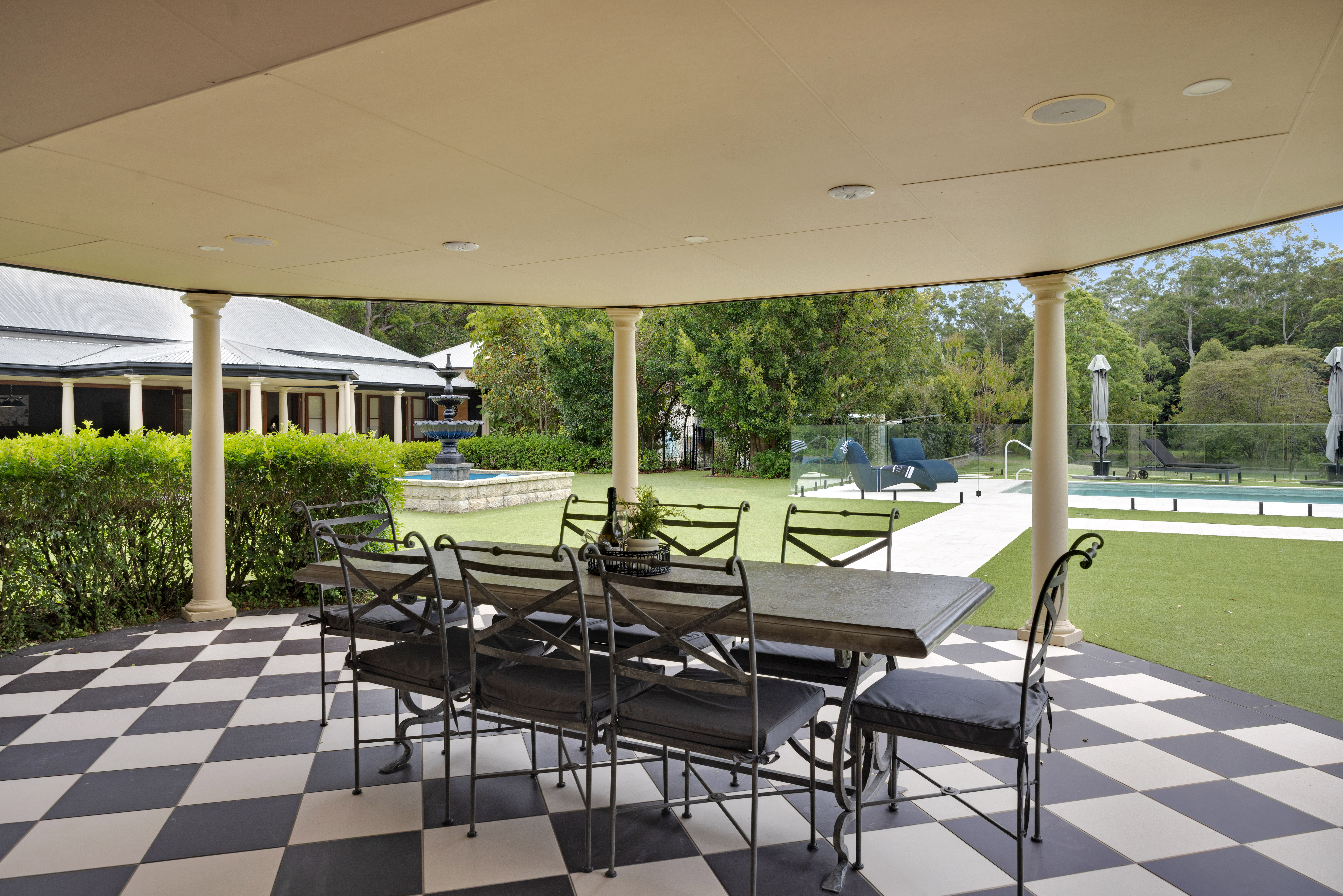 Privately positioned across almost 21 acres of pristine landscape, the impressive 800m² residence commands its setting with quiet authority. At its centre, a north-facing European-inspired courtyard forms the social heart of the estate - a space of symmetry and romance anchored by a striking Victorian fountain. Built in 2001 by acclaimed builder Garth Chapman the home channels the grace of an early 20th-century country manor while seamlessly incorporating every modern convenience. Craftsmanship, proportion and materiality combine to create a residence of timeless sophistication.