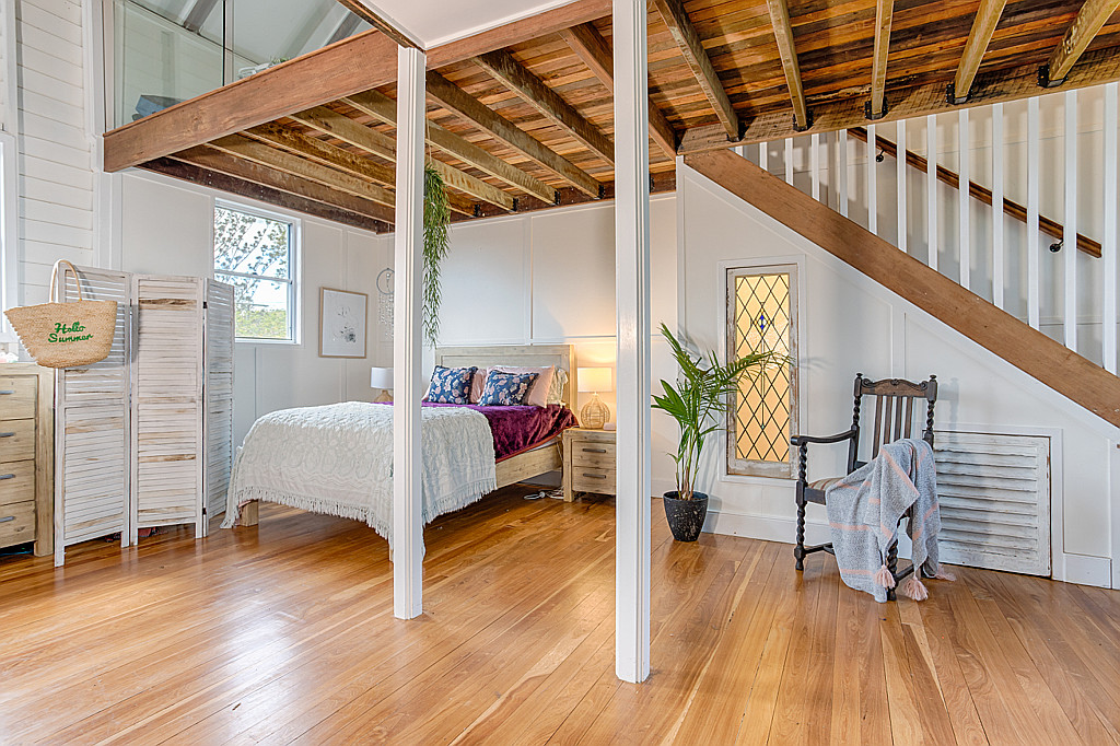 With soaring cathedral ceilings in excess of 3-metres, there is a palpable sense of space and light, along with a feeling of calm and peace; hardwood polished floors on the main and loft level are a feature that infuses charm and warmth throughout, and the exterior walls are VJ weatherboard.